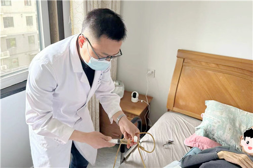 由于張先生長期臥床在家,且留置導(dǎo)尿管,往來醫(yī)院檢查不便。腫瘤內(nèi)科主任趙成、護(hù)士長張林妹和泌尿外科副主任醫(yī)師吳慧君急病人所急、想病人所想,主動(dòng)上門服務(wù)。趙主任詳細(xì)了解患者病情,及時(shí)調(diào)整用藥,并指導(dǎo)如何正確服用靶向藥物;吳主任詢問患者近期排尿情況,并為其更換導(dǎo)尿管;張護(hù)士長為患者骶尾部壓瘡換藥,同時(shí)向患者和家屬進(jìn)行居家安寧療護(hù)宣教。