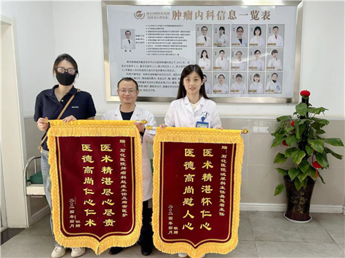 “太謝謝你們了!知道我們?nèi)メt(yī)院不方便,就專程上門服務(wù),真的很感動(dòng)!”家屬將錦旗送到科室,再次向醫(yī)護(hù)人員表達(dá)謝意。