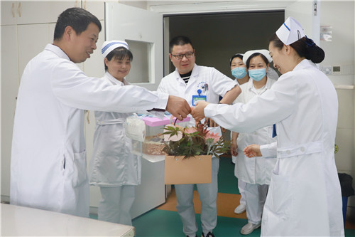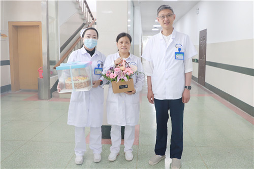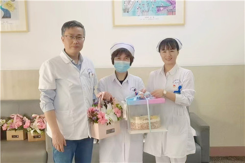 5月11日上午,院領(lǐng)導(dǎo)深入病區(qū)為護(hù)理人員送上蛋糕和鮮花,衷心感謝他們?cè)谧o(hù)理崗位上的辛勤付出,同時(shí)也為雙主體教改班學(xué)生送去節(jié)日禮物,并送上美好祝愿。