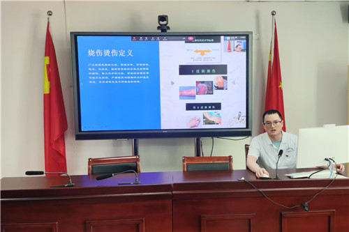 考慮施工場地臨山靠水的作業(yè)特點(diǎn),急診科陳丙紅主任結(jié)合自身20余年急救經(jīng)驗(yàn),系統(tǒng)講解毒蛇種類識別、咬傷癥狀分級及黃金急救流程等核心知識,重點(diǎn)強(qiáng)調(diào)“冷靜制動、及時排毒、快速送醫(yī)”三原則。培訓(xùn)過程中穿插真實(shí)案例視頻,深入剖析錯誤處理方式引發(fā)的嚴(yán)重后果,切實(shí)強(qiáng)化了參訓(xùn)人員的科學(xué)施救意識。護(hù)士長石嘉麗現(xiàn)場演示繃帶加壓包扎法等關(guān)鍵實(shí)操技術(shù),并指導(dǎo)參訓(xùn)人員利用三角巾、冰袋等簡易工具,開展肢體固定與傷口處理模擬演練,確保人人都掌握基礎(chǔ)急救要領(lǐng)。燒傷整形二病區(qū)副主任王超用通俗易懂的語言,細(xì)致講解燒燙傷的現(xiàn)場急救措施和日常預(yù)防要點(diǎn)。普通外科主管護(hù)師成群則針對高溫作業(yè)風(fēng)險,深入闡述中暑的識別、分級和規(guī)范急救步驟。