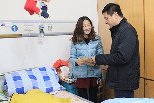 自12月2日我院燒傷整形科收治重度燙傷棄嬰以來,醫(yī)院高度重視,減免醫(yī)療費(fèi)的同時(shí),成立專門的治療小組全力救治。繼12月10日,院工會(huì)拿出“愛心基金”慰問患兒后,12月17日上午,黨委書記陳勝、副院長花杰、護(hù)理部主任李桃云代表醫(yī)院職工,將由138名職工自發(fā)捐助的10340元愛心善款交給照顧患兒的福利院工作人員。