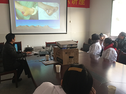 我院普通外科、泌尿外科、耳鼻喉科、燒傷整形科、神經(jīng)內(nèi)科、呼吸內(nèi)科、心血管內(nèi)科、急診科等科室專家以幻燈片的形式配上言簡意賅的解說,將自己科室的技術(shù)特色及發(fā)展方向清楚地展現(xiàn)在大家眼前。尤其是急診科護(hù)士長鄭潔講解的心肺復(fù)蘇術(shù)吸引了眾人的眼球,在實(shí)際操作時(shí)大家都認(rèn)真觀看學(xué)習(xí)模擬。當(dāng)天下午泌尿外科周國保主任還上門回訪了曾在我院住院的當(dāng)?shù)鼗颊?,患者?duì)我院的回訪工作表示感激。