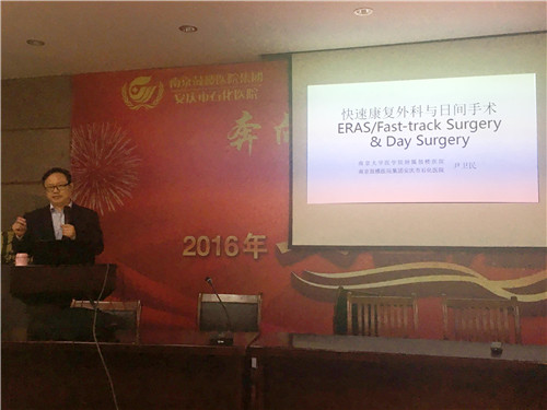 日前,我院副院長、主任醫(yī)師、碩士生導(dǎo)師、南京鼓樓醫(yī)院普通外科專家尹衛(wèi)民在多功能廳為全院作《快速康復(fù)外科與日間手術(shù)》學(xué)術(shù)講座。尹院長將自己最新關(guān)注研究的快速康復(fù)外科理念和日間手術(shù)模式與大家分享交流。
