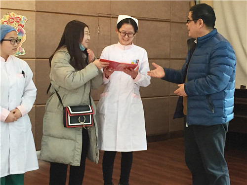 花杰副院長到會并致辭,表達了我院對護理實習工作的關心和重視,并向即將面臨就業(yè)的護生送上誠摯的祝福。李主任宣布了獲得2016-2017年“優(yōu)秀實習生”名單,并邀請該年度優(yōu)秀帶教老師為她們頒發(fā)榮譽證書。
