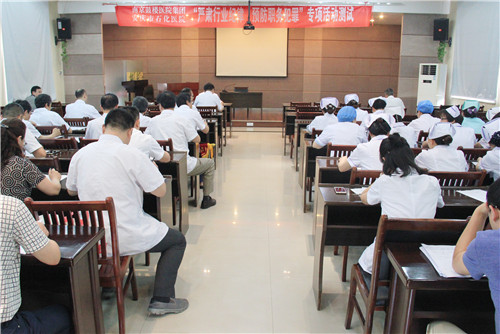 為落實《醫(yī)院預(yù)防職務(wù)犯罪專項活動實施方案》,根據(jù)省衛(wèi)生計生委、省檢察院統(tǒng)一部署,由醫(yī)教科牽頭、醫(yī)教科和黨辦共同組織開展了題為《嚴肅行業(yè)紀律、預(yù)防職務(wù)犯罪》的專項活動測試。全院所有在職員工均按黨員或非黨員身份參加考核,取得教育實效。