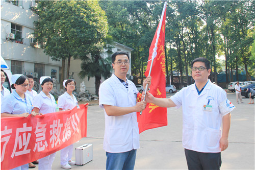 7月12日下午,醫(yī)院應(yīng)急醫(yī)療救援隊(duì)舉行了簡(jiǎn)潔而莊重的集結(jié)儀式,十八名隊(duì)員在醫(yī)院北門(mén)廣場(chǎng)整裝列隊(duì)。儀式由醫(yī)教科吳彥農(nóng)科長(zhǎng)主持,花杰副院長(zhǎng)為隊(duì)伍授旗,并就醫(yī)療隊(duì)以后可能參加的救援任務(wù)要求醫(yī)療隊(duì)增強(qiáng)各方面工作的銜接能力,提高防控水平,統(tǒng)一指揮,分工協(xié)作,切實(shí)提高我院對(duì)突發(fā)公共衛(wèi)生事件應(yīng)急防控的實(shí)戰(zhàn)能力和突發(fā)事件的醫(yī)學(xué)救治能力。