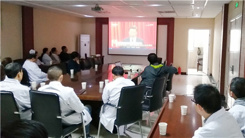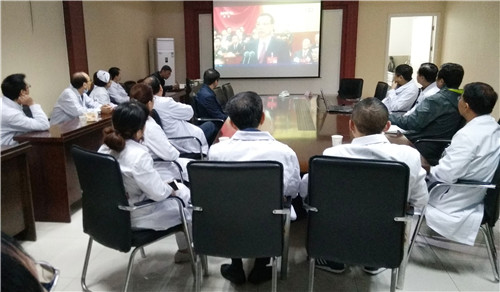 10月18日上午9點,隨著莊嚴的入場音樂響起,中國共產(chǎn)黨第十九次全國代表大會開幕會正式召開,圍坐在一起等待觀看的安慶醫(yī)院黨員、干部代表情不自禁地鼓起掌來,期盼已久的偉大時刻終于到來。