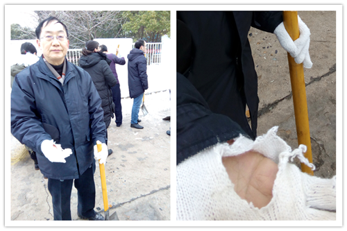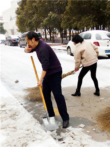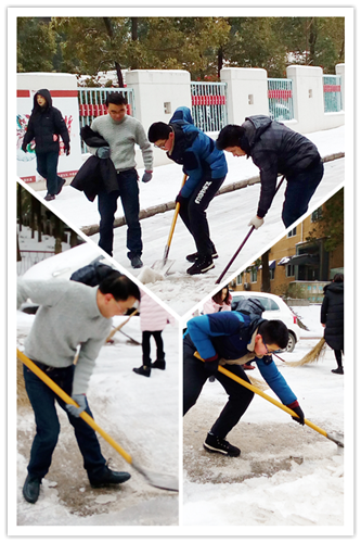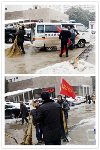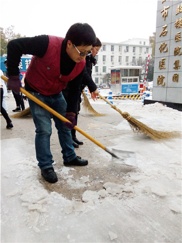 又是一夜的大雪,嚴(yán)嚴(yán)密密地將大地鋪裹上厚重的銀裝。因天寒地凍,雪塊硬如石頭,路面光滑如鏡,無(wú)人行,無(wú)車動(dòng)。1月28日早晨6:30分,為給患者、員工、市民開(kāi)辟“安全無(wú)障的道路”,由干部、黨員、積極分子組成的石化醫(yī)院突擊隊(duì)又一次投入除冰掃雪的戰(zhàn)斗,鐵釬叮嚀、鐵鍬飛舞,院內(nèi)、廠區(qū)、市區(qū)德寬路留下了他們戰(zhàn)天斗地的歡快身影……