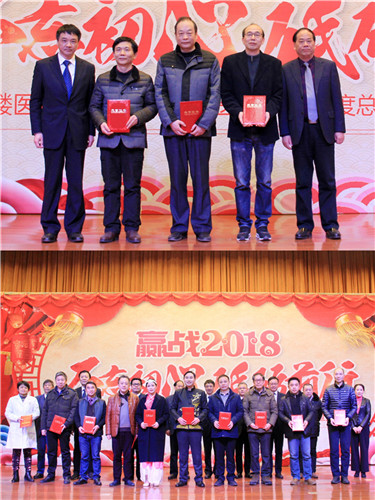 陳勝書記宣讀新工集團(tuán)優(yōu)秀員工、金陵藥業(yè)優(yōu)秀管理者、優(yōu)秀員工、文明班組、市級(jí)和院級(jí)重點(diǎn)學(xué)科名單,以及醫(yī)院《關(guān)于表彰2017年度先進(jìn)集體和先進(jìn)個(gè)人的通報(bào)》,9名院領(lǐng)導(dǎo)為先進(jìn)個(gè)人、集體現(xiàn)場(chǎng)頒獎(jiǎng),號(hào)召全院?jiǎn)T工向先進(jìn)個(gè)人學(xué)習(xí),向重點(diǎn)科室看齊,立足崗位,創(chuàng)先爭(zhēng)優(yōu)。