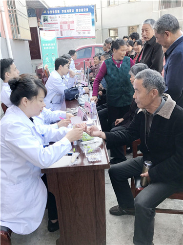 車行1個(gè)多小時(shí)到達(dá)義診現(xiàn)場,他們手腳麻利地穿上工作服迅速進(jìn)入工作狀態(tài),為早已等候多時(shí)的村民量血壓、測血糖、問診、把脈、開處方,并耐心解答村民的各種健康問題,給予科學(xué)的飲食建議,讓大家及時(shí)了解自己的身體狀況及相關(guān)疾病的預(yù)防。