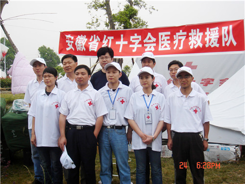 康復(fù)科主任楊釗,當(dāng)年是一名骨科醫(yī)師,更是一名11年黨齡的老黨員,醫(yī)院派他首發(fā),加入安徽省第一批赴川醫(yī)療隊。長達(dá)16天里,他始終牢記身份和使命,作為安慶醫(yī)療分隊唯一的黨員,每天徒步6個多小時穿行在余震和山體垮塌的危險中,以不怕犧牲、實干、苦干的精神讓黨旗高高飄揚在了援川隊員的心中。