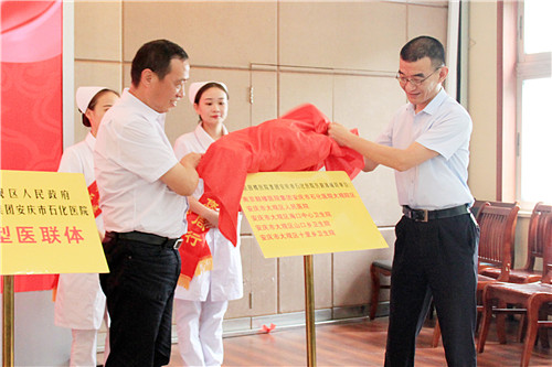 執(zhí)筆繪藍(lán)圖,落筆惠民生。9月20日,大觀區(qū)人民政府與南京鼓樓醫(yī)院集團(tuán)安慶市石化醫(yī)院有限公司“聯(lián)姻”組建的安慶市首家緊密型醫(yī)聯(lián)體醫(yī)院在安慶市第三人民醫(yī)院正式揭牌。大觀區(qū)委、區(qū)政府有關(guān)領(lǐng)導(dǎo)出席并致辭,金陵藥業(yè)公司總裁梁玉堂、紀(jì)委書記陳勝和南京鼓樓醫(yī)院集團(tuán)安慶市石化醫(yī)院院長(zhǎng)周長(zhǎng)江等管理高層出席南京鼓樓醫(yī)院集團(tuán)安慶市石化醫(yī)院大觀院區(qū)(安慶市第三人民醫(yī)院)揭牌儀式,大觀轄區(qū)各醫(yī)療機(jī)構(gòu)負(fù)責(zé)人等參加了揭牌儀式。同日,安慶市石化醫(yī)院吹響創(chuàng)建三級(jí)醫(yī)院“集結(jié)號(hào)”。