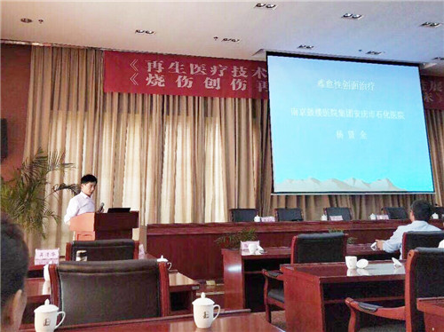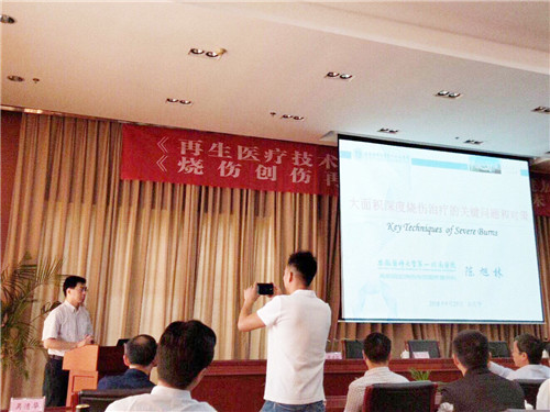 本次會(huì)議邀請(qǐng)了中國燒傷創(chuàng)瘍雜志副總編輯、研究員王洪生,安徽醫(yī)科大學(xué)一附院教授陳旭林,安徽醫(yī)科大學(xué)一附院教授孫業(yè)祥等專家授課,他們也對(duì)我院燒傷整形科在再生醫(yī)療技術(shù)方面的成就表示肯定。我院燒傷整形二科主任楊賢金、副主任醫(yī)師徐松濤、護(hù)士長吳清華、門診部主任韓張杰也參與授課,與來自省內(nèi)多家醫(yī)療機(jī)構(gòu)120余名醫(yī)護(hù)人員現(xiàn)場交流。