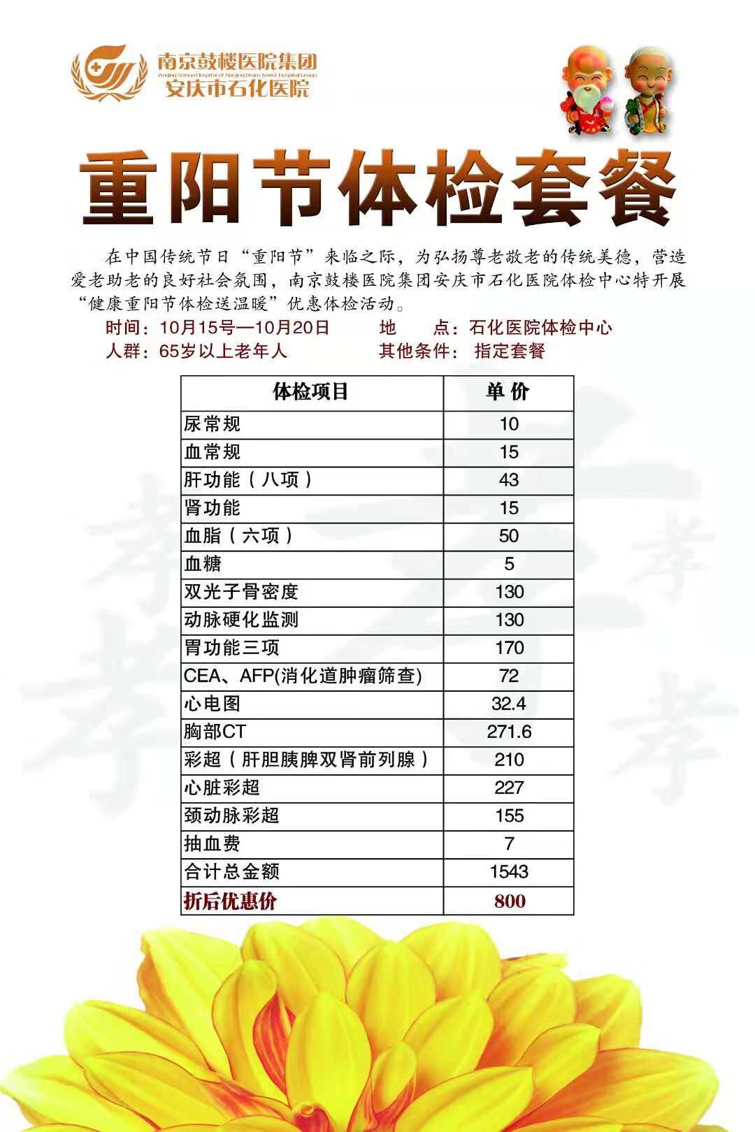 石化醫(yī)院體檢中心早就為你的家人準備好了大禮——重陽體檢特惠套餐。