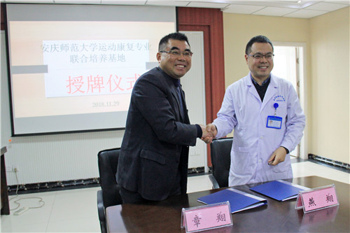 安慶師范大學(xué)于2017年成功獲批本科運(yùn)動(dòng)康復(fù)專業(yè)并順利招生,著力培養(yǎng)具有一定發(fā)展?jié)摿皠?chuàng)新精神、具有較強(qiáng)實(shí)踐能力的物理治療師和運(yùn)動(dòng)損傷防護(hù)師。安慶師范大學(xué)副校長張群表示,聯(lián)合培養(yǎng)基地的成立,將對學(xué)校運(yùn)動(dòng)康復(fù)專業(yè)人才培養(yǎng)工作發(fā)揮良好的促進(jìn)作用,并帶動(dòng)安慶乃至安徽康復(fù)醫(yī)療事業(yè)的發(fā)展。校方將獲得石化醫(yī)院優(yōu)質(zhì)資源,致力于人才培養(yǎng)質(zhì)量,提高學(xué)生理論與實(shí)踐相結(jié)合的能力,以造就大批優(yōu)秀康復(fù)人才。