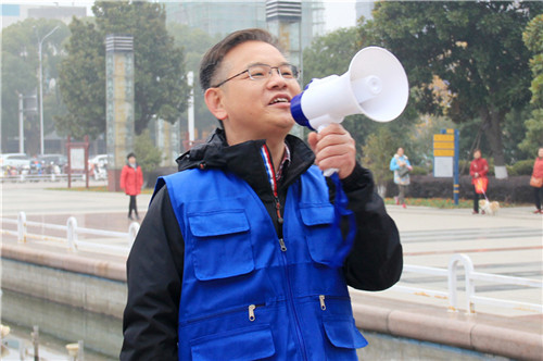 院長(zhǎng)周長(zhǎng)江領(lǐng)號(hào)“我跑我健康,醫(yī)院更美好”,并發(fā)出發(fā)令。旗手方小林揮舞著院旗跑在最前面,全體醫(yī)護(hù)人員身著統(tǒng)一的紅、藍(lán)兩色背心,邁著有力的步伐,喊著響亮的口號(hào),沖出起點(diǎn),沿東大湖環(huán)湖慢跑一周。