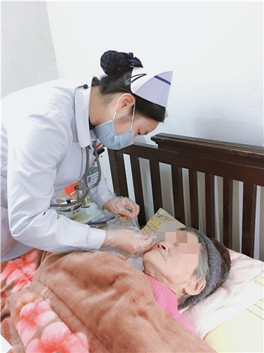 王奶奶曾因腦出血在我院神經(jīng)外科住院,目前意識(shí)模糊,生活完全不能自理,無法自主吞咽食物及排尿,長(zhǎng)期留置胃管和尿管。出院后,更換胃管尿管成了很大的問題??剖易o(hù)士不怕辛苦,主動(dòng)上門服務(wù)。