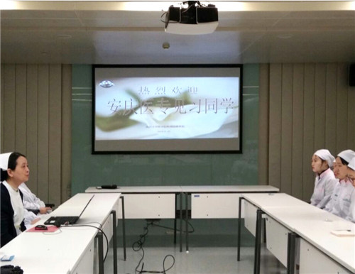 鼓樓醫(yī)院護(hù)理部分管教學(xué)的王睿老師首先歡迎同學(xué)們的到來,在進(jìn)行了簡短的崗前培訓(xùn)后,將同學(xué)們安排到相應(yīng)的臨床科室見習(xí),并指定資深老師帶教。
