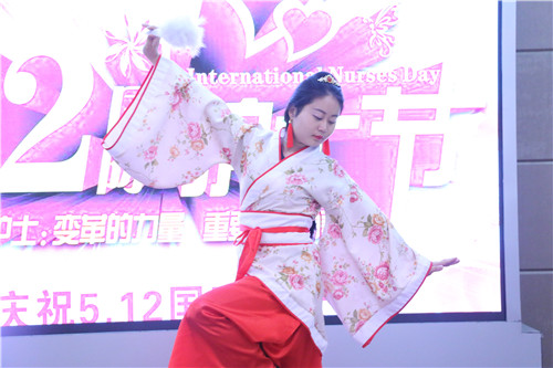 年輕護士長們深情朗誦原創(chuàng)作品《堅守——與愛同行》,同時放映來自我院50對雙職工的院內外照片集錦,還有記錄雙職工工作、生活點滴的微視頻,真情演繹了雙職工夫妻檔攜手共進、相濡以沫的故事。雙主體教改班的同學們伴隨著《最終舞蹈》的音樂,用青春洋溢的舞姿展現(xiàn)了護理人員充滿活力的新風貌、新精神、新形象。來自大觀院區(qū)寧夢然的舞蹈《無歸》美輪美奐、韻味十足,讓大家感受到了古典的魅力?!拔矣幸粋€夢像雨后彩虹,用我們笑容來溫暖病人被疾病折磨的心靈”,一曲《最美的期待》將大會氣氛推向高潮。
