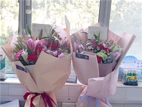 有時(shí),我們也會(huì)收到一束束的鮮花,但是送花的“主人”卻是難尋,只有那行“祝白衣天使幸福美麗”的字熠熠生輝,笑容也在我們的眉間綻放。