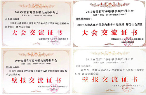 安徽省醫(yī)學(xué)會耳鼻咽喉頭頸外科分會第18次學(xué)術(shù)年會暨安徽省護理學(xué)會2019年眼耳鼻咽喉頭頸外科護理年會于6月28日-30日在安慶召開。本次會議邀請國內(nèi)諸多著名專家授課,我院耳鼻咽喉頭頸外科收獲頗豐,在各項評比中斬獲多項榮譽,為科室及醫(yī)院爭光添彩。