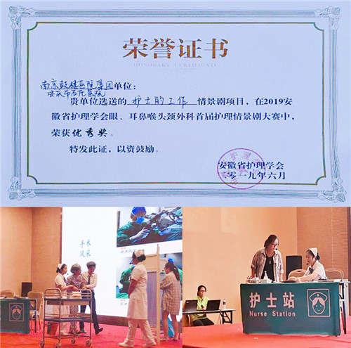 在今年的省年會上,安徽省護理學(xué)會眼、耳鼻喉護理專業(yè)委員會還組織了首屆情景劇大賽。預(yù)賽階段,耳鼻咽喉頭頸外科的節(jié)目《護士的工作》在安徽省眾多投稿作品中脫穎而出,成功闖入決賽。舞臺上,程萍、李娜、吳映麗、陳園園、錢行、湯未的精彩表演,贏得掌聲不斷,評委及觀眾的一致認(rèn)可也是對多日辛苦排練的“演員們”最大的肯定。他們充分展現(xiàn)了科室醫(yī)護人員多才多藝的青春風(fēng)采,并最終在17個決賽參賽作品中收獲優(yōu)秀獎。