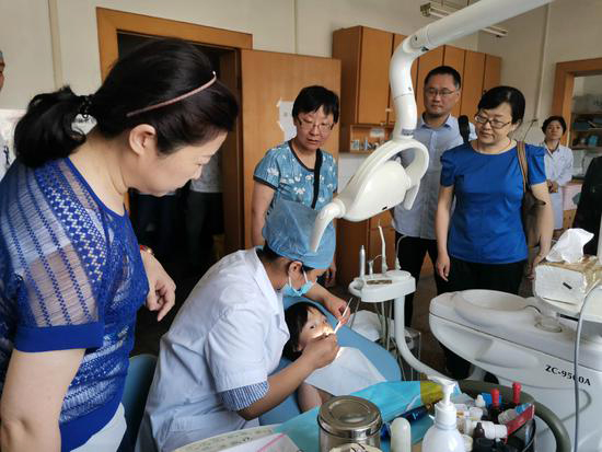 項目進行中,省兒童口腔疾病綜合項目辦專家及省衛(wèi)健委疾控處處長王海一行 6 人,對大觀區(qū) 2018 年度全國兒童口腔疾病綜合干預項目實施情況進行了督查,我院院長周長江、醫(yī)教科科長吳彥農、口腔科主任牛躍陪同督查。牛躍主任向專家組匯報了項目進展情況,專家組一行也來到口腔科門診現場了解兒童涂氟和窩溝封閉操作,查閱相關資料,并指導工作開展。隨后,專家組還前往石化三小,隨機抽查了部分學生窩溝封閉質量實施情況,充分肯定了窩溝封閉效果。